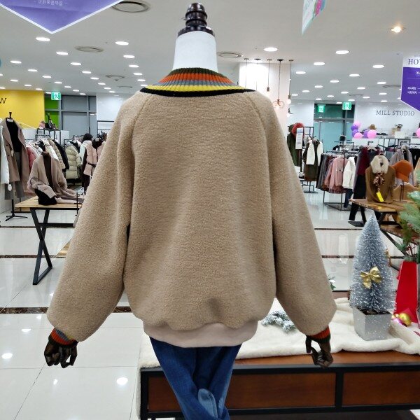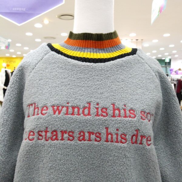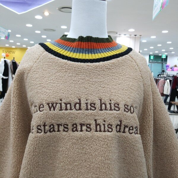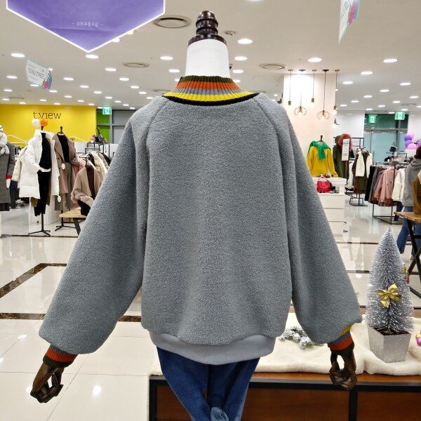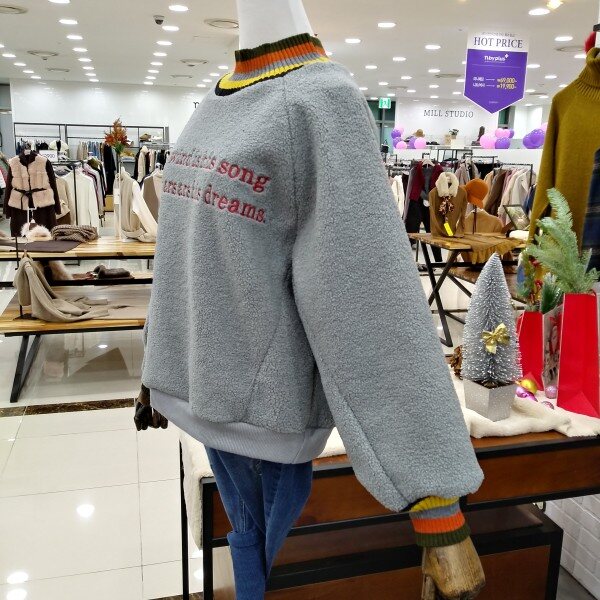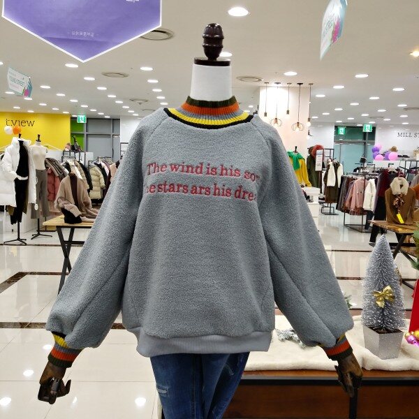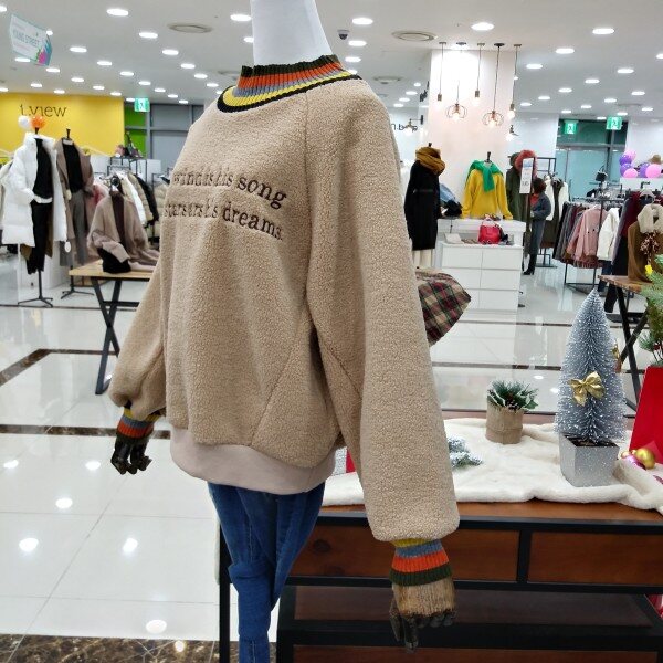 목부분과 소매라인 컬러풀배색으로 이쁜 따뜻한 뽀글이 맨투맨티로 여유있는 핏라인 이에요