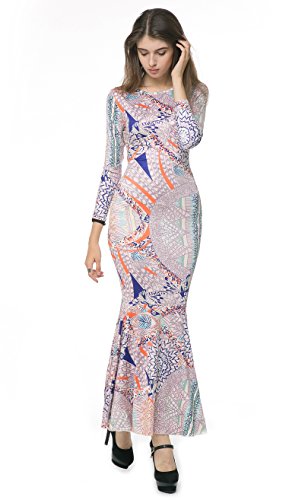 Sexy Womens Vintage Long Sleeve Bodycon Evening Gown Mermaid Maxi Dress