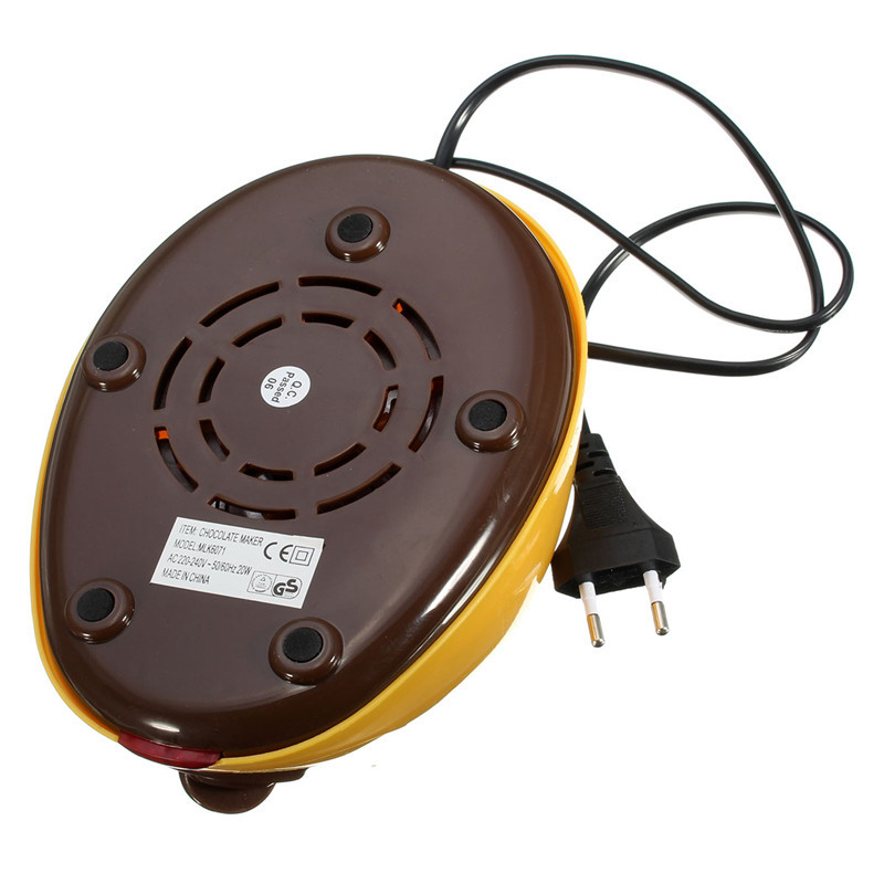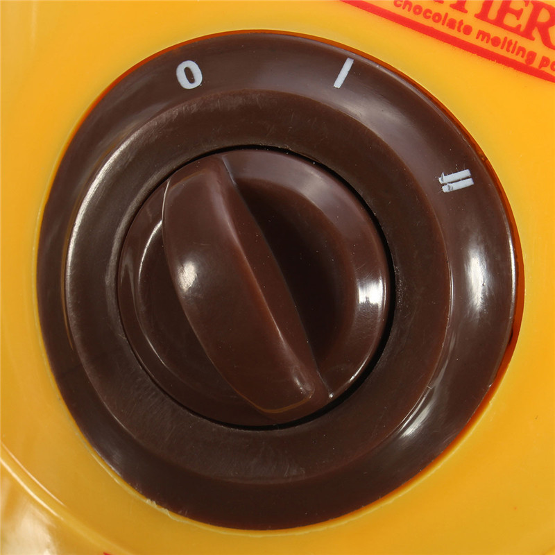 Note: Chocolate melts with the second gear (about 70-80 degrees), almost melted to convert one file (about 40-50 degrees), because chocolate long time heating above 60 degrees will cause the chocolate crystallization, can cause qualitative change. Only applies to the countries that the voltage is 220-240V, not for those voltage is 110-120V.