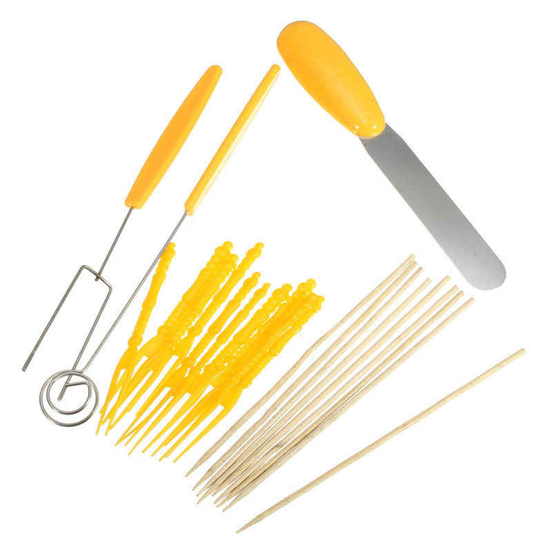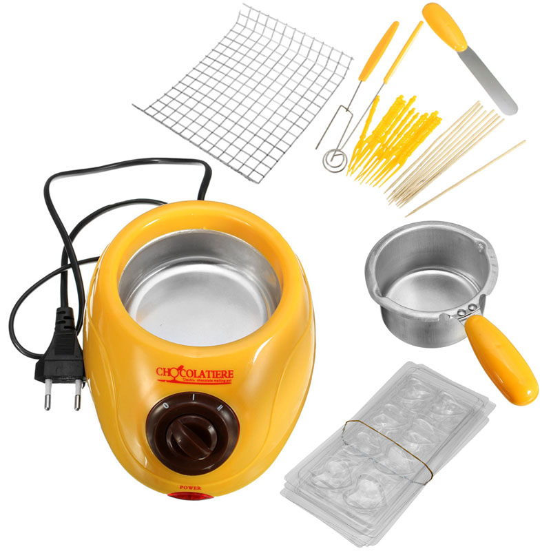 Package Content: 1 x Electric Chocolate Melting Pot 1 x Spatula 6 x Moulds(heart,bear,rabbit,coffee bean,star,Christmas tree) 1 x Large heart shaped mold 10 x Plastic forks 10 x Bamboo sticks 1 x Spiral fork 1 x Flat chocolate making fork 1 x Shelf 1 x User manual(English)