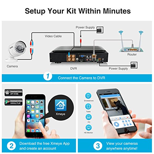 -. Feature : AHD/CVBS/TVI/IP 4-in-1 DVR supports up to 1080N recording; 720P robust indoor& outdoor cameras providing true day & night monitoring / Watch live video, record and playback on smartphone, tablet and computer. Get instant email alert when unexpected movements are detected / DVR with intuitive 10.1 inch LCD screen, no need to waste money on extra monitor, easier video monitoring and playback / IP66 weatherproof and dustproof cameras designed for indoor and outdoor use, three-axis mounting base for easier camera installation / HDMI certified member, CE & FCC certification with qualified power supplies. DVR supports HDMI&VGA full HD video output