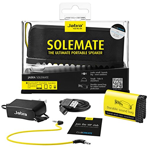 Lieferumfang: 1 x Jabra Solemate Lautsprecher, 1 x USB-Ladekabel, 1 x 3,5-mm-Audiokabel, 1 x Schutztasche, 1 x Kurzanleitung, 1 x Garantieerklarung, 1 x Merkblatt mit Warnhinweisen