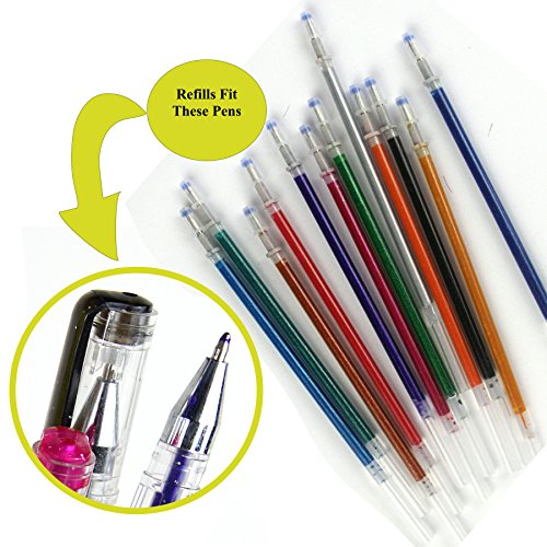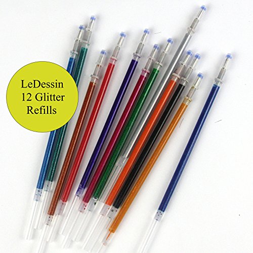 - 4 packs of 12 Glitter Gel Pen Refills | Will fit LeDessin glitter gel pens and most brands of gel pens