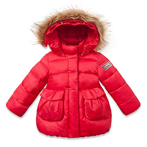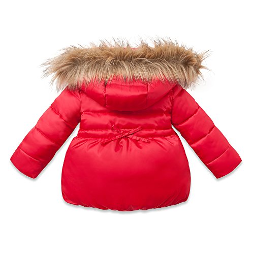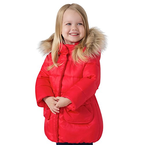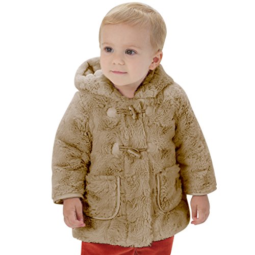 Long Sleeve Winter Parka Jacket with Full Zipper for Unisex Babies & Kids - Sizes 12M to 4T. Full Button Up & Hoody allows for bundling up on colder days, or just chilling out on warmer ones. Stylish Ribbon button closures ensure a cute & snugly fit. Warm fur design hoody will keep the ears and face warm, along with thick puffy down to keep cold air out. Thick layered material provides warmth while still keeping the little one in style. Nothing says adorable like a warmly wrapped bundle of joy. Classy throwback styling for the modern baby. Do not Bleach or Tumble Dry.Feature