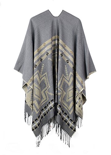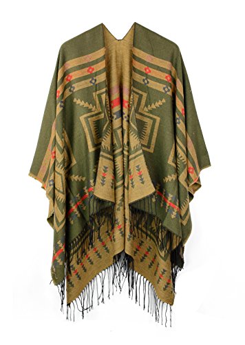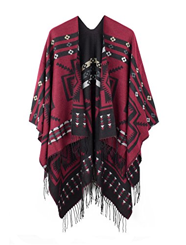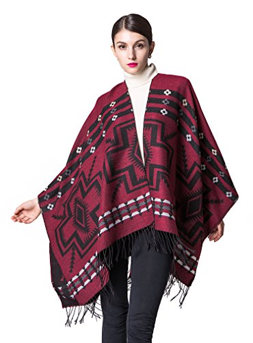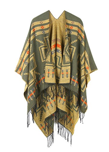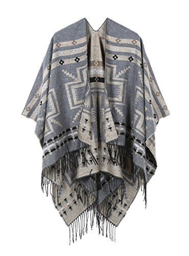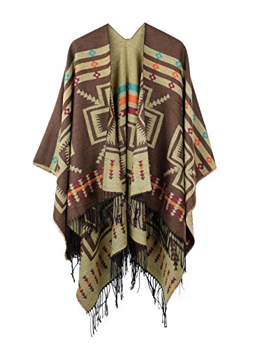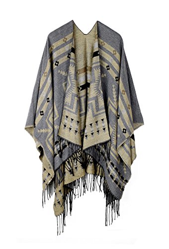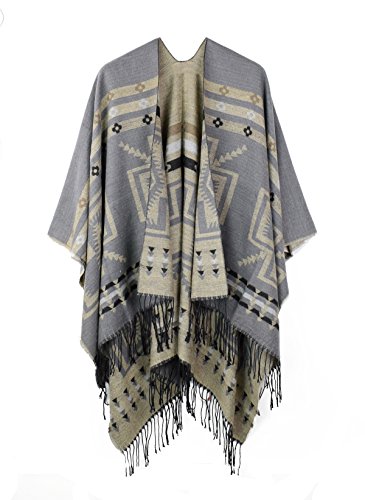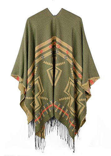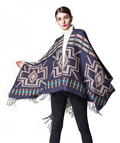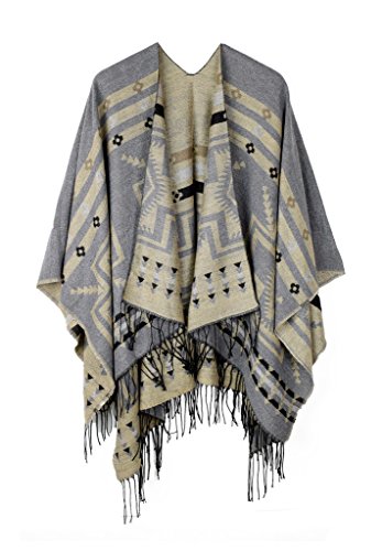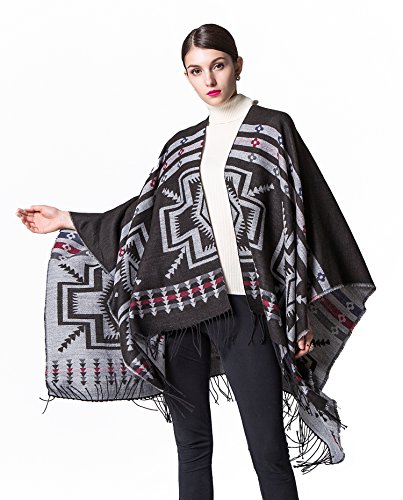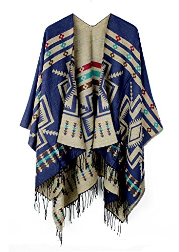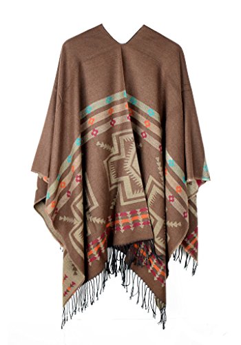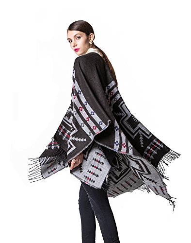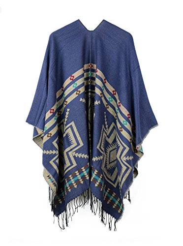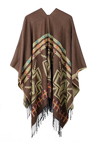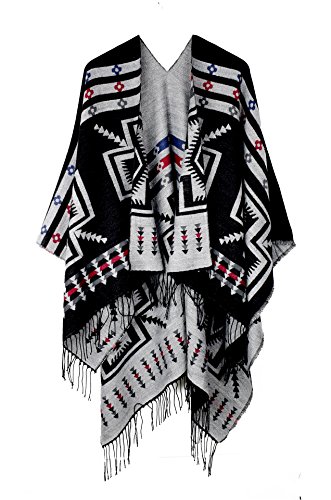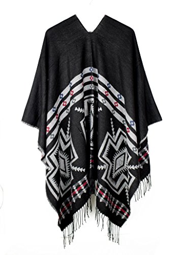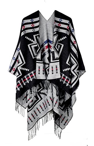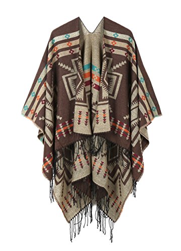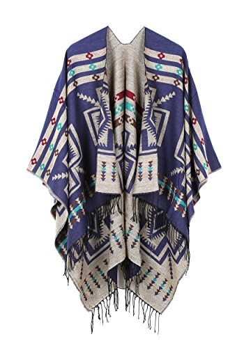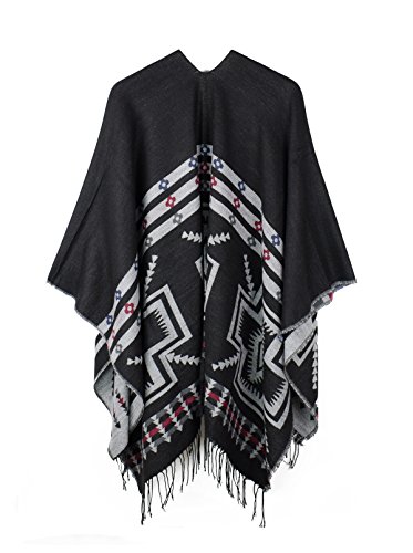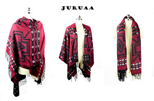 | Juruaa Women's Print Tassel Warm Poncho Capes Cardigan |