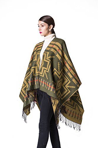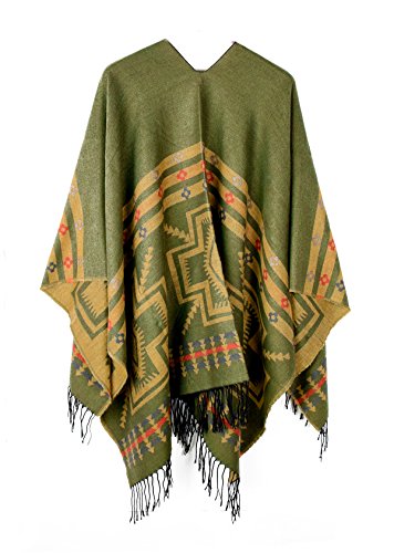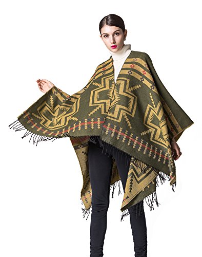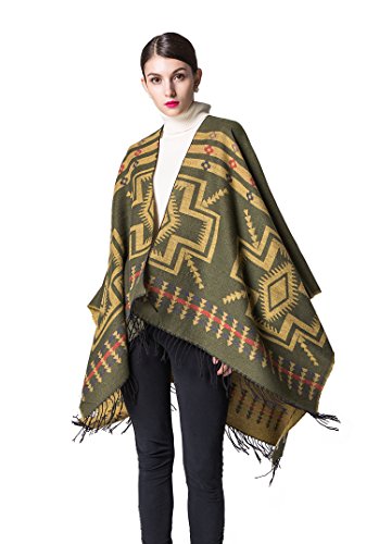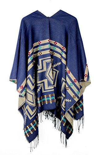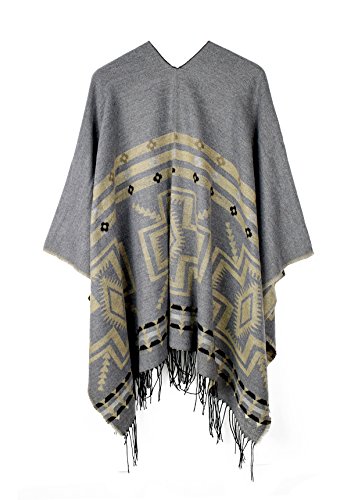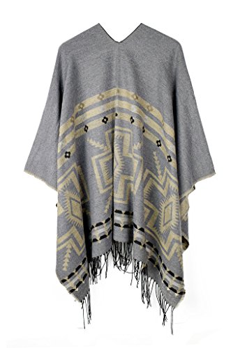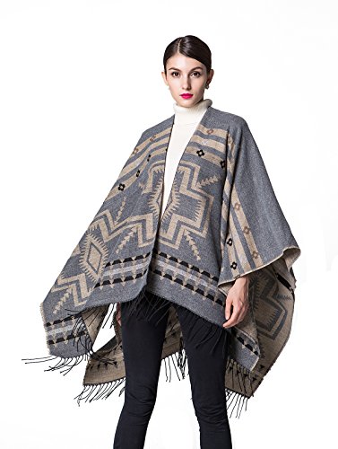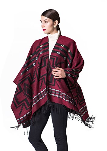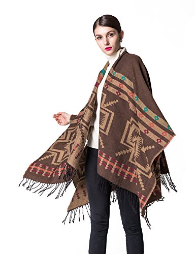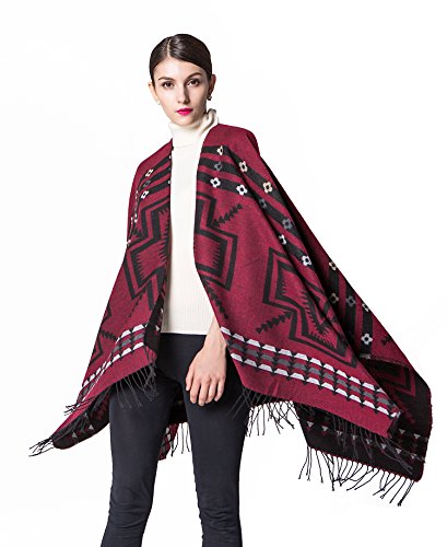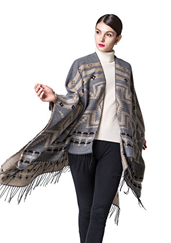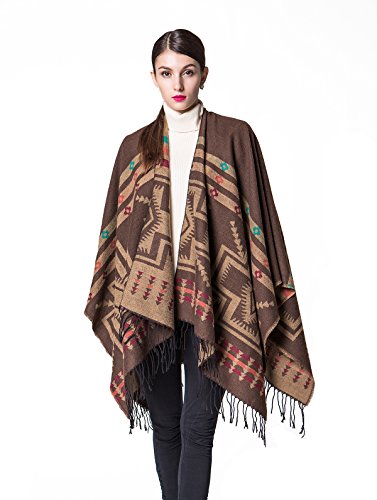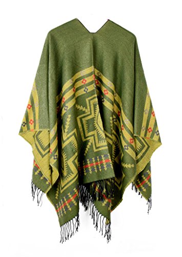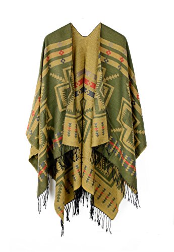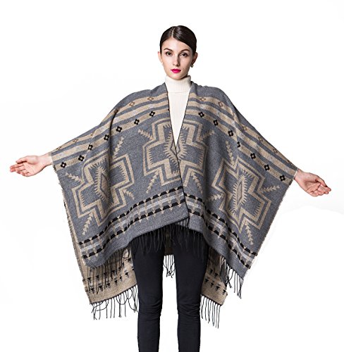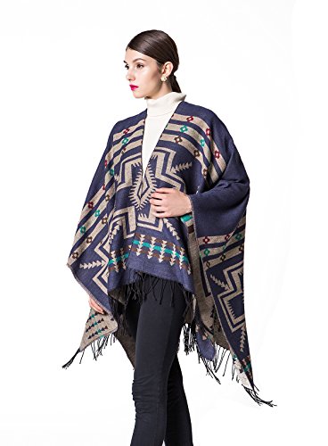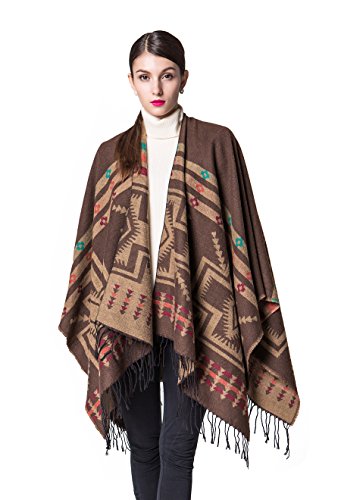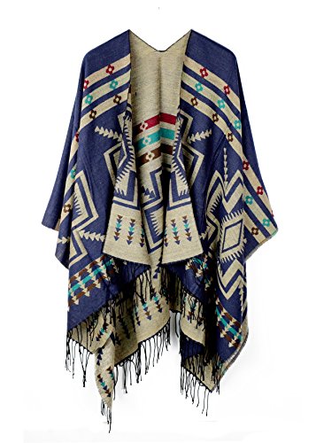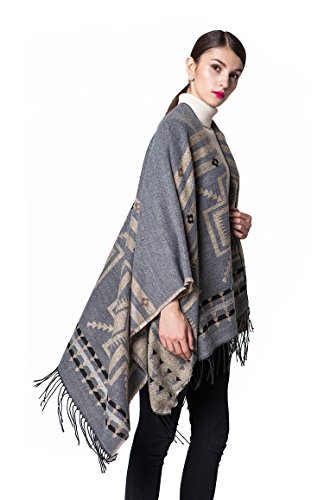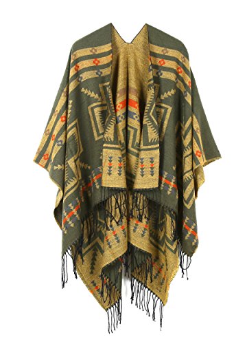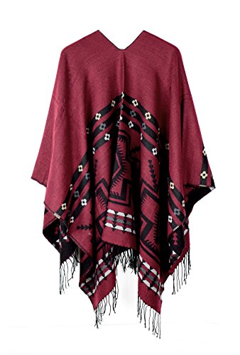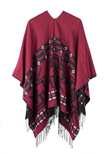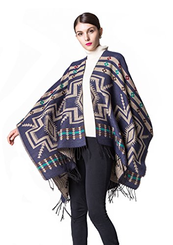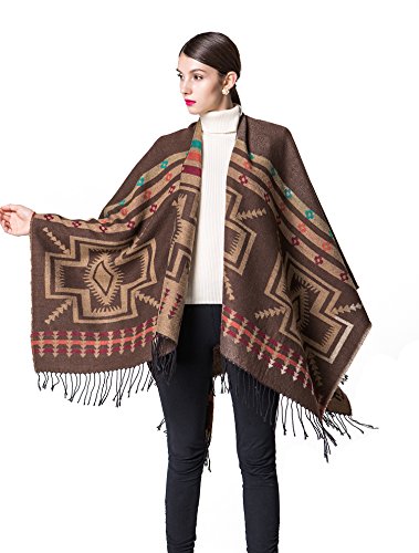 | Juruaa Women's Print Tassel Warm Poncho Capes Cardigan |