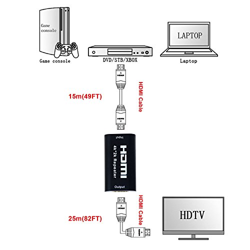 Note: This product is mainly the function of the HDMI repeater,play a role of signal relay and a certain effect of extention, but need to ensure that the two HDMI cables can work properly when connecting alone. If you want to improve the performance or amplifying signal by connecting this product,it can't be implemented if any single HDMI cable can't work or with splash screen,crash screen.