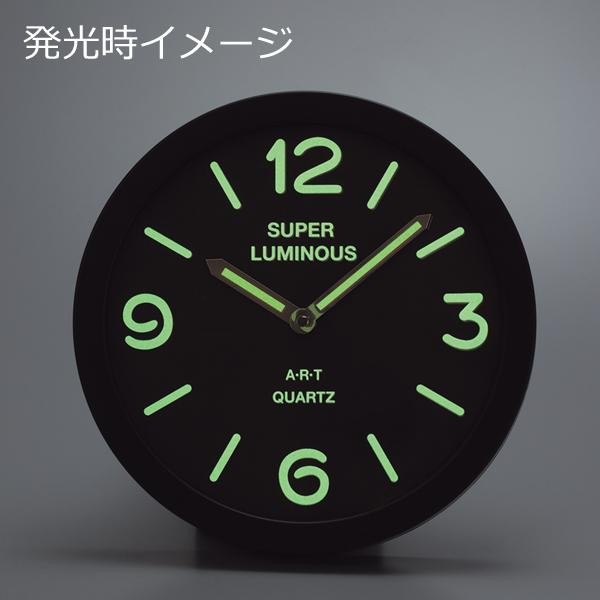 蓄光文字盤で夜間でも自覚を確認できるスタイリッシュなインテリアクロックです。