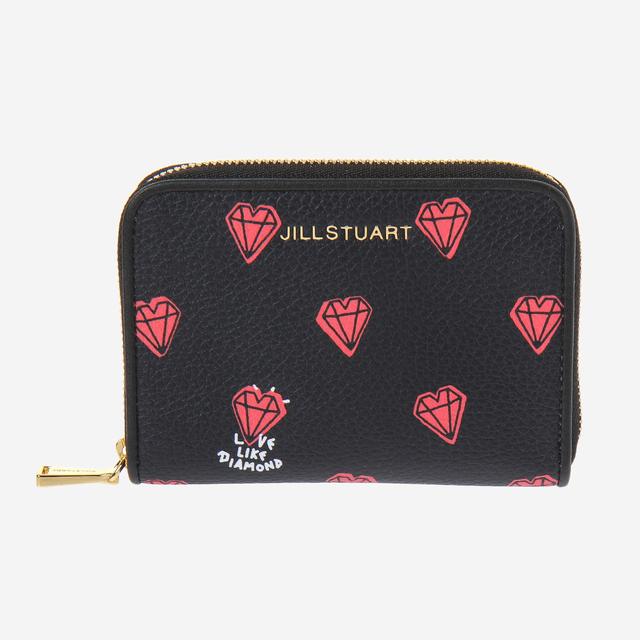 블랙 컬러의 질 스튜어트 고유의 하트 다이아몬드 패턴으로 귀여운 느낌을 주는 동전/카드 지갑입니다.