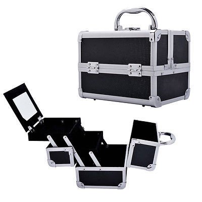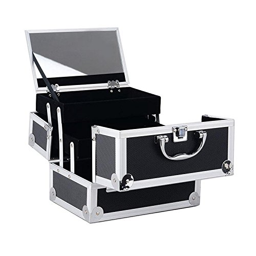 STYLISH. Keep your favorite lippies and bronzers safe and handy in this trendy makeup train case. It sports a solid black color with a diamond texture to give you a classy and stylish look wherever you are.