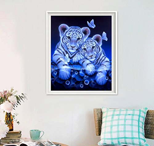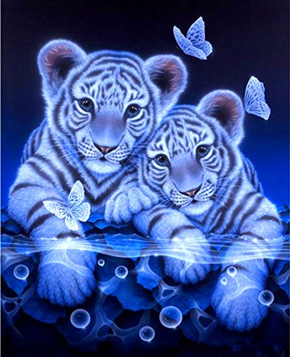 21secret 5D Diamond Diy Painting Full Drill Handmade Cute Two White Tiger and Butterfly Cross Stitch Home Decor Embroidery Kit