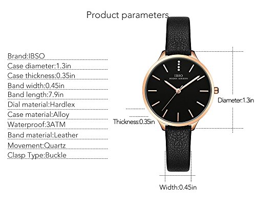 Brand, Seller, or Collection Name:IBSO Part Number:IBSO Item Shape:Round Display Type:Analog and digital Case diameter:1.30 inches Case Thickness:0.31 inches Band Material:leather Band width:0.40 inches Band Color:Black Dial color:Black Special features:Shock resistant Movement:Japanese quartz