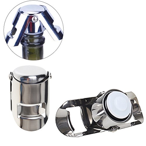 -. Feature : DESIGN - Constructed of durable stainless steel and rubber stopper,tight and rust-resistant / QUANTITY - 2 Pcs wine stoppers / SUITABLE OCCASIONS - Suitable for all champagne, sparkling wine and water bottles / FEATURES - These Champagne bottle stoppers provide an air-tight seal to prolong and preserve opened bottles of Champagne / EASY TO CLEAN - Dishwasher safe, simply rinse the stopper with water and let it air-dry