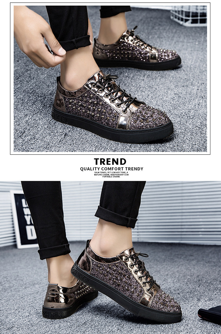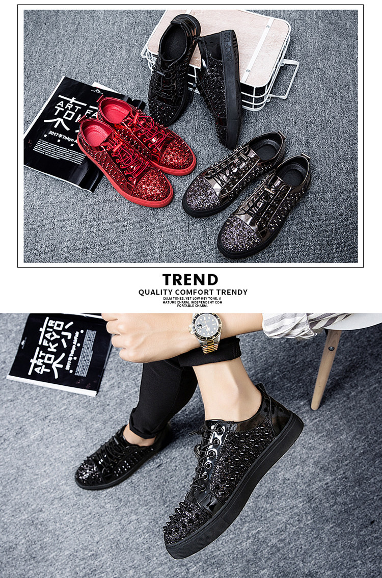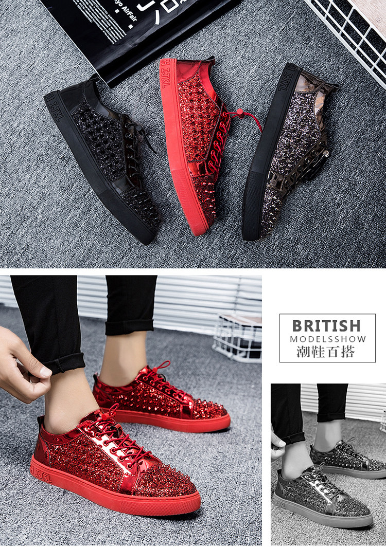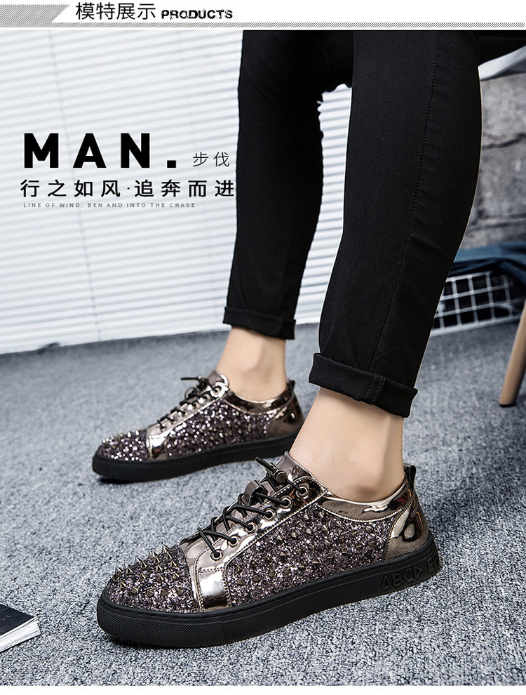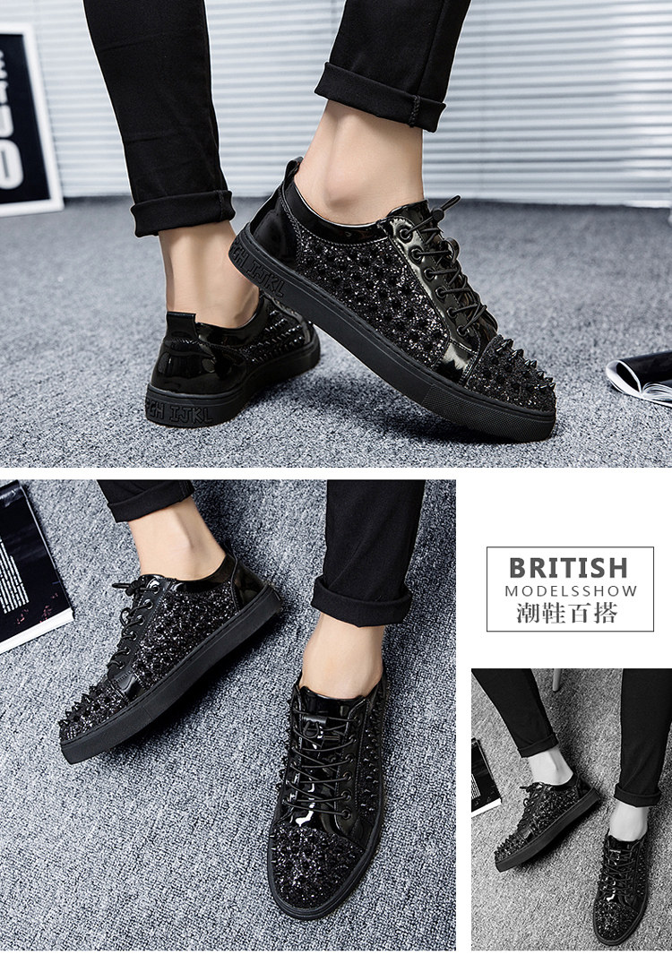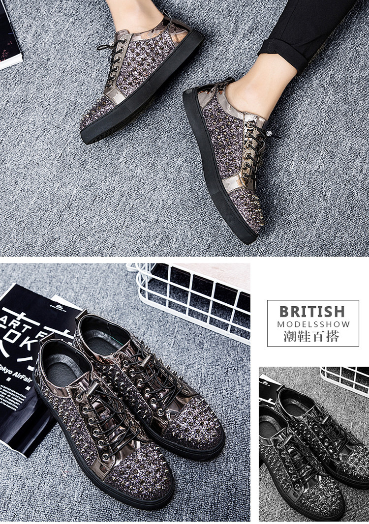 秋冬男鞋子韩版潮流铆钉朋克钉鞋个性休闲鞋复古百搭板鞋夜店潮鞋