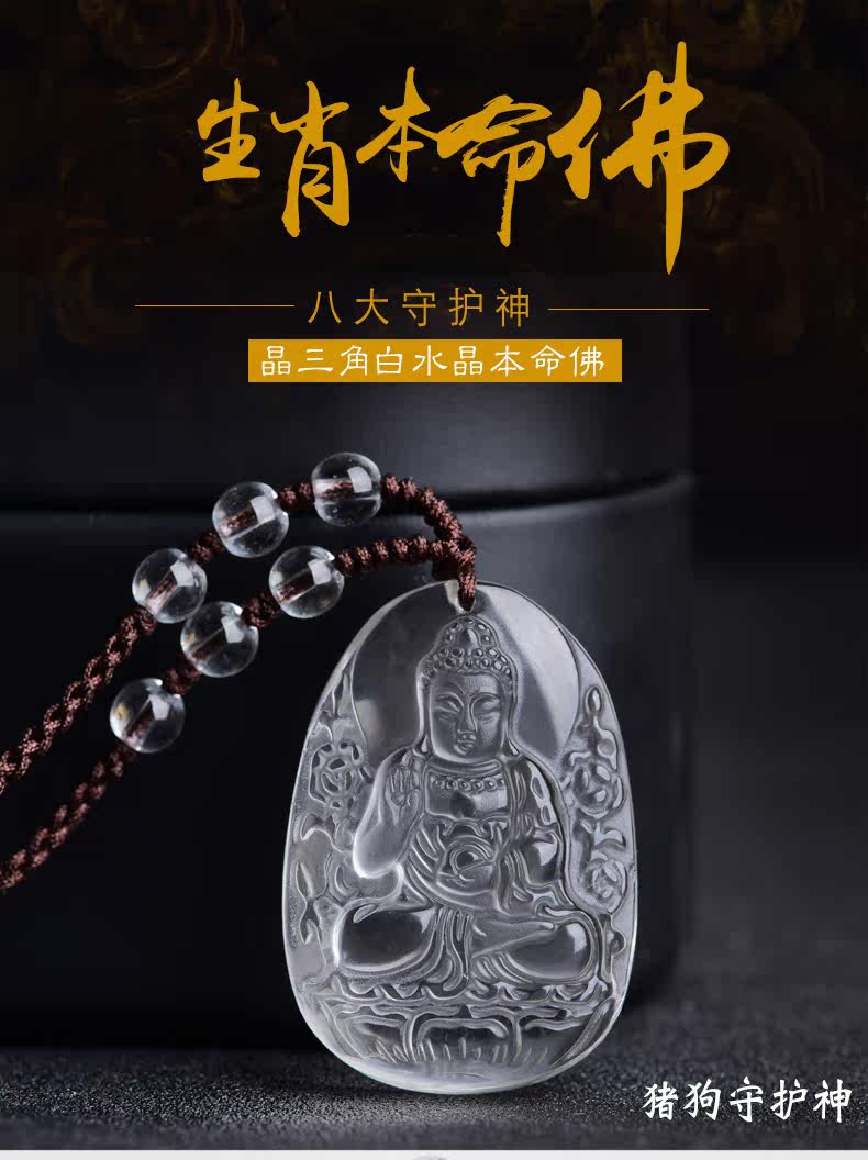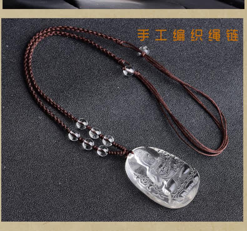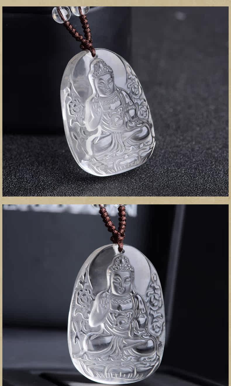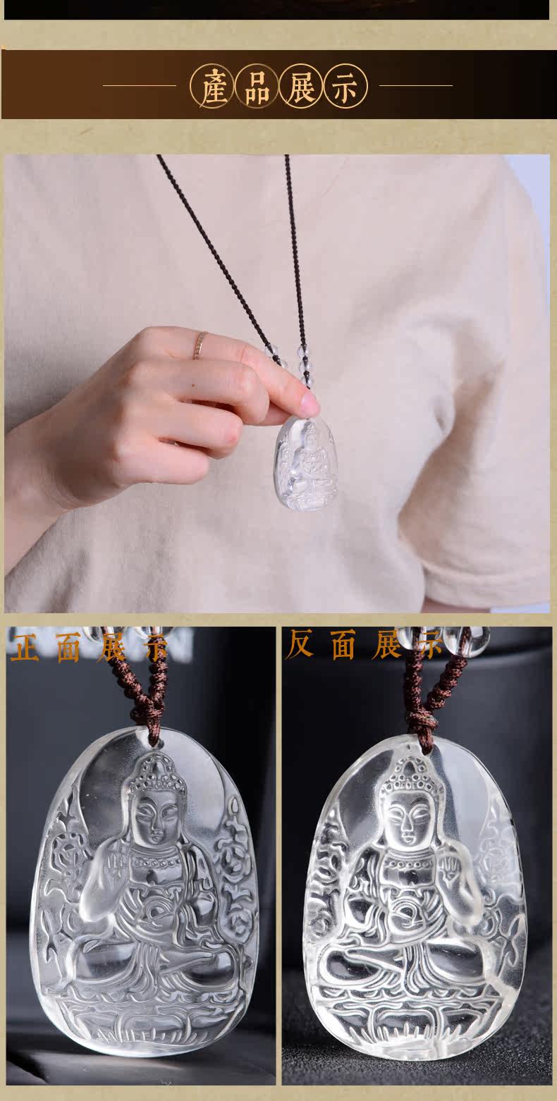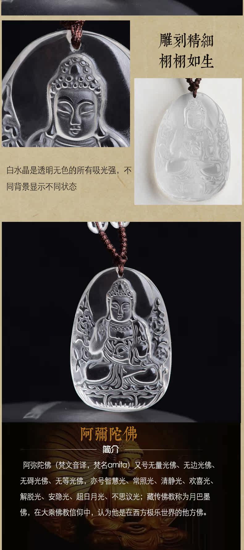 开光 天然白水晶阿弥陀佛吊坠 男女项链守护神属狗猪本命佛