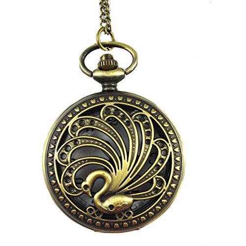 -. Title : YouYouPifa Retro Bronze Exquisite Peacock Open Screen Pattern Hollow Big Pocket Watch