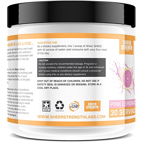 -. Title : Fat Burner for Women and Men - Sheer SHRED, 9 Proven Ingredients for Burning Fat While Maintaining Muscle Mass, Pink Lemonade Flavor, 30 Servings, 166 grams