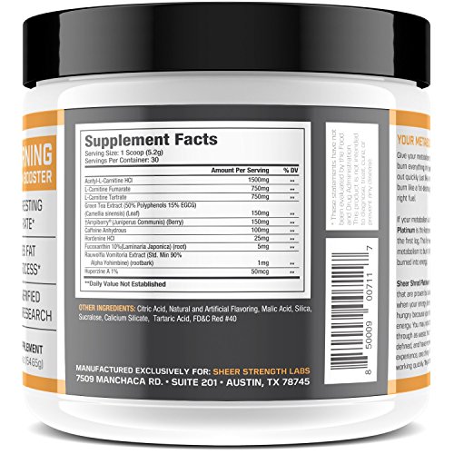-. Feature : BURNS FAT FAST- Sheer SHRED contains 9 Powerful fat-burning thermogenic ingredients in clinically-effective doses for rapid weight loss results you'll be seeing and feeling quickly. / RETAINS MUSCLE MASS - Sheer SHRED is formulated with 500mg of pure Green Tea Extract , the exact dosage that studies show can help prevent muscle tissue breakdown in women and men during fat loss, while enhancing post workout recovery after workouts. / REAL RESULTS OR YOUR MONEY BACK - Your order of Sheer SHRED is backed by our 'Love Your Results or Your Money Back' 100% Guarantee - if you're unsatisfied with your order for any reason, simply send back even your opened bottle within 30 days and we'll provide you with a fast, hassle-free refund. Click the 'ADD TO CART' button at the top of the page to place your order now! / POWDERED FOR INCREASED BIOAVAILABILITY - Sheer SHRED is the first fat burner for women and men of it's kind - a muscle-retaining thermogenic fat burning supplement that comes in convenient powder form for maximum ingredient absorption and bioavailability. / TESTED, TRUSTED, & CERTIFIED - Sheer SHRED's powerful weight loss formula is Made in The U.S.A. in cGMP-quality certified and FDA-approved laboratories for optimal ingredient purity and potency.