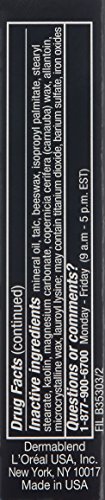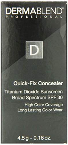 Our ultimate full coverage concealer makeup formulated for all skin types including the most sensitive skin. Provides Broad-spectrum SPF 30 and all-day hydration. Super saturated concealer stick with high-performance pigments. The creamy texture is never cakey or mask-like. Concealer glides on smoothly to act as a blemishes and acne scar concealer, dark circles concealer and under eye concealer. Does not enhance the look of lines, wrinkles or pores. Skin feels comfortable and looks naturally flawless. Provides maximum cover for up to 16 hours of consistent smudge - and transfer-resistant color wear - when set with Dermablend Setting Powder. Product packaging may vary. dermatologist tested. allergy tested. non-comedogenic. non-acnegenic. fragrance free. sensitive skin tested. Inactive ingredients: mineral oil, talc, beeswax, isopropyl palmitate, stearyl stearate, kaolin, magnesium carbonate, copernicia cerifera (carnauba) wax, allantoin, microcrystalline.Feature