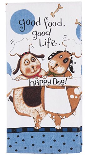 - Terry towel fully printed dog chefs, bones, polka dots, good food good life and happy dog wording