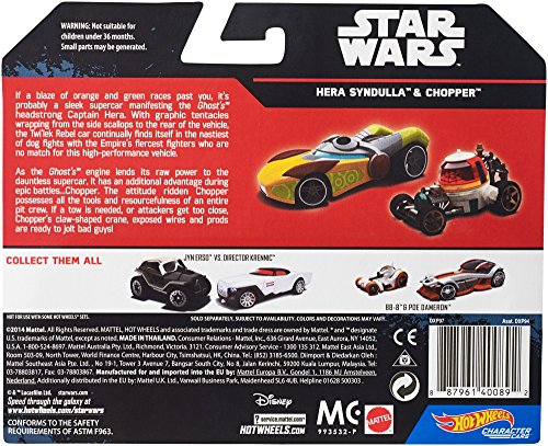 -. Binding : Toy -. Brand : Hot Wheels -. EAN : 0887961400892 -. Feature : Collect and play with a galaxy of Hot Wheels Star Wars cars / Iconic Star Wars characters reimagined as Hot Wheels cars / Authentic and highly collectible Character Cars / Designed in 1:64-scale with inspired-by-character features and decos / Makes a great gift for kids, collectors and Star Wars fans of all ages -. IsAdultProduct : 0 -. Label : Mattel -. Manufacturer : Mattel -. Model : DXP97 -. MPN : DXP97 -. PackageQuantity : 1 -. PartNumber : DXP97 -. ProductGroup : Toy -. ProductTypeName : TOYS_AND_GAMES -. Publisher : Mattel -. Studio : Mattel -. Title : Star Wars Hera Syndulla & Chopper vehicle, 2-Pack -. UPC : 887961400892 -. Warranty : 1 year warranty against manufacturer defects