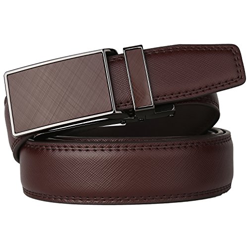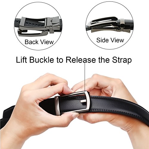 -. Feature : EASY TRIM TO FIT - Easy Ratchet Design in buckle, It allows you simply to take off the strap from buckle and cut it for your desired waist size, In Case Buy Bigger, No Need To Return, Just Cut It to Fit! / EASY USE - Just slide the belt into the buckle and pull the belt through, the buckle simply auto locks the belt.To release the belt, just lift the buckle to obtain an inaudible release! Extremely easy to use! / NO MORE HOLES - Dante's Fashion Ratchet Belt provides 38 unique adjustments for a superb comfortable fit. Easy removable buckle allows you to cut the belt to your ideal size to give a P.R.Immer and custom tailored appearance! / MADE TO LAST - Leather strap is a bit wider than 11/8" presenting the perfect look of a fine, genuine leather quality belt, complemented with an HIGHLY FASHIONABLE stylish, buckle that is elegantly designed with class. Scratch resistant buckles made to last. / GIFT BOX PACKING - It is one of the most special gifts for Groomsmen, Birthdays, Anniversaries, Father's Day, Christmas and other Special Occasions.