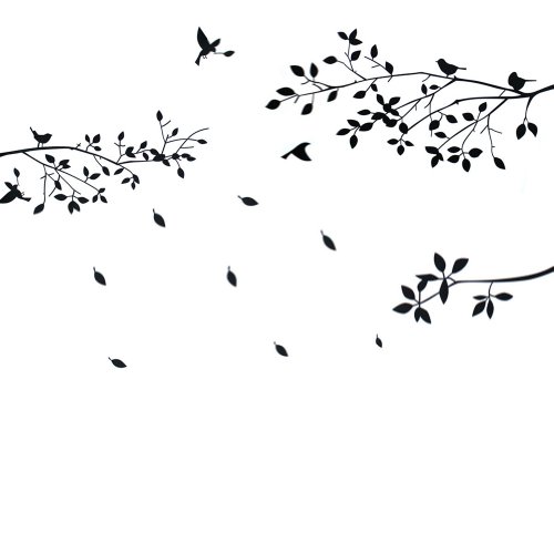 -. Title : Fashion Tree Branches Birds Leaves Home Wall Stickers Living Room Decals - Black