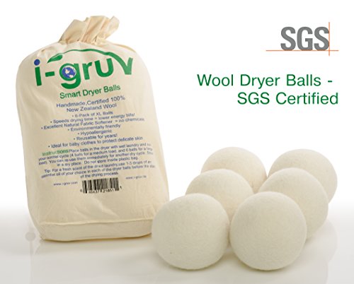 i-Gruv EcoFriendly Hypoallergenic Reusable Natural Fabric Softener Wool Dryer Balls, XL, Set of 6
