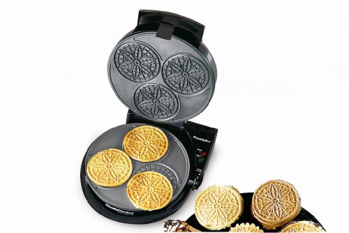 Nonstick pizzelle maker bakes a trio of 3-inch pizzelles in less than 60 seconds