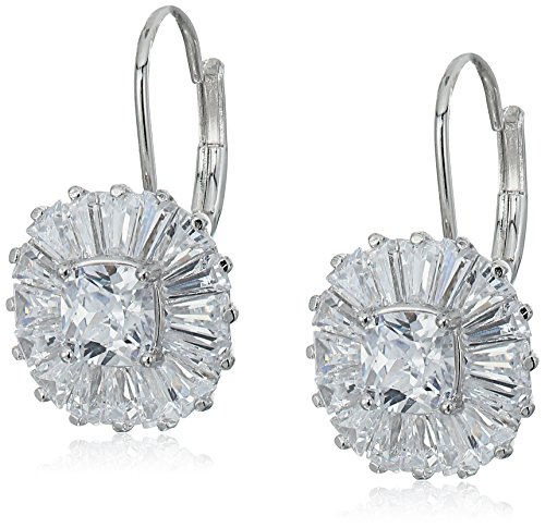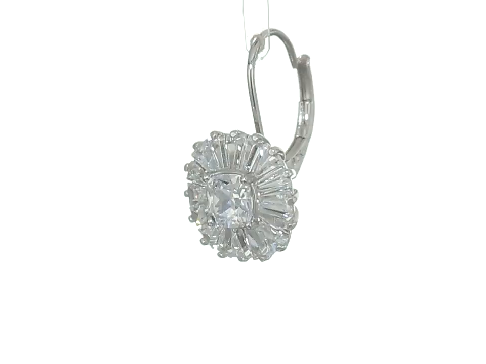 Rhodium Plated Sterling Silver Cushion Cut White Cubic Zirconia 5mm Halo Lever Back Earrings