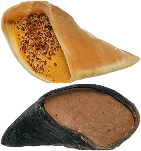 -. Feature : Two 3.5-Inch Filled Hooves (one hoof for each filling flavor): (1) Peanut Butter and (1) Cheese n' Bacon / Made from cleaned and trimmed cattle hooves stuffed with a yummy filling / All natural, no chemicals or preservatives / Promotes dental health / Individually wrapped; made in the USA
