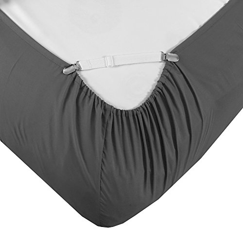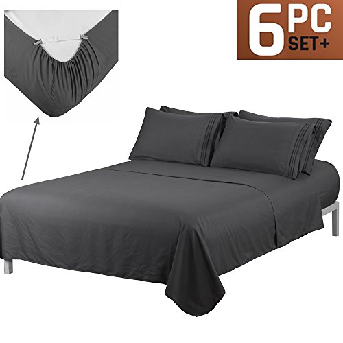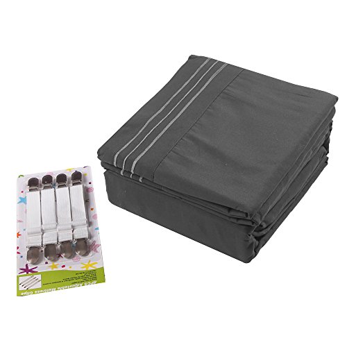 Sfoothome Bed Sheet Set With 4 Sheet Clips - Deep Pockets - 2 Extra Pillow Cases - Wrinkle,Fade,Stain Resistant - 6 Pieces ( Queen ,Gray)
