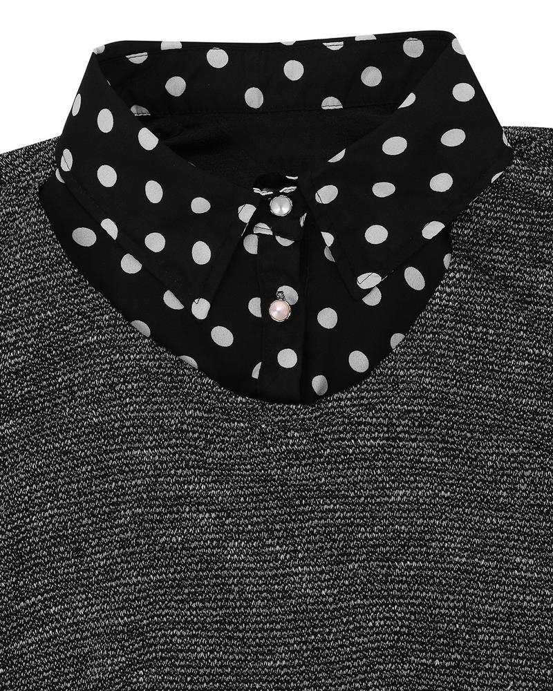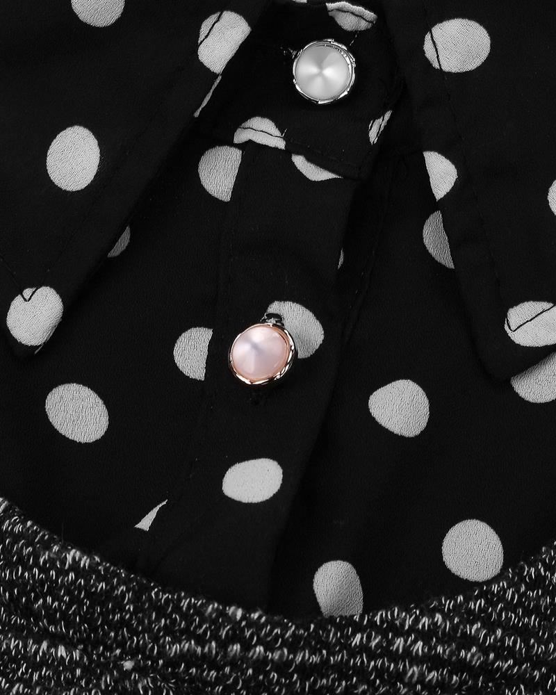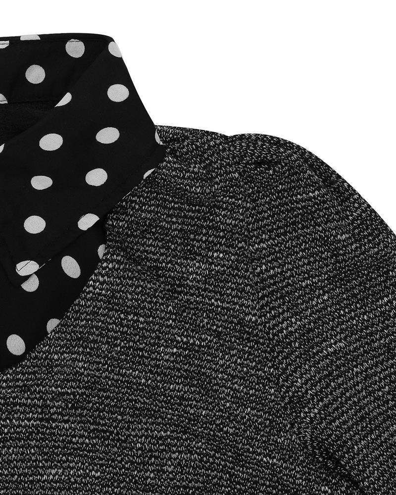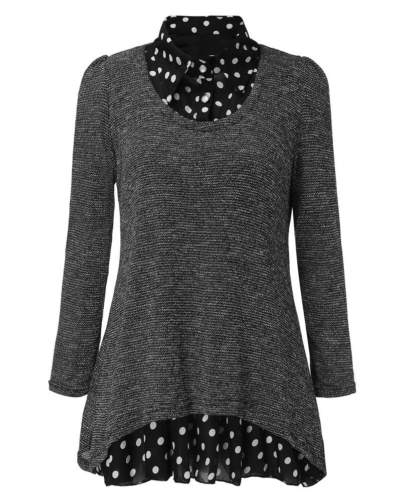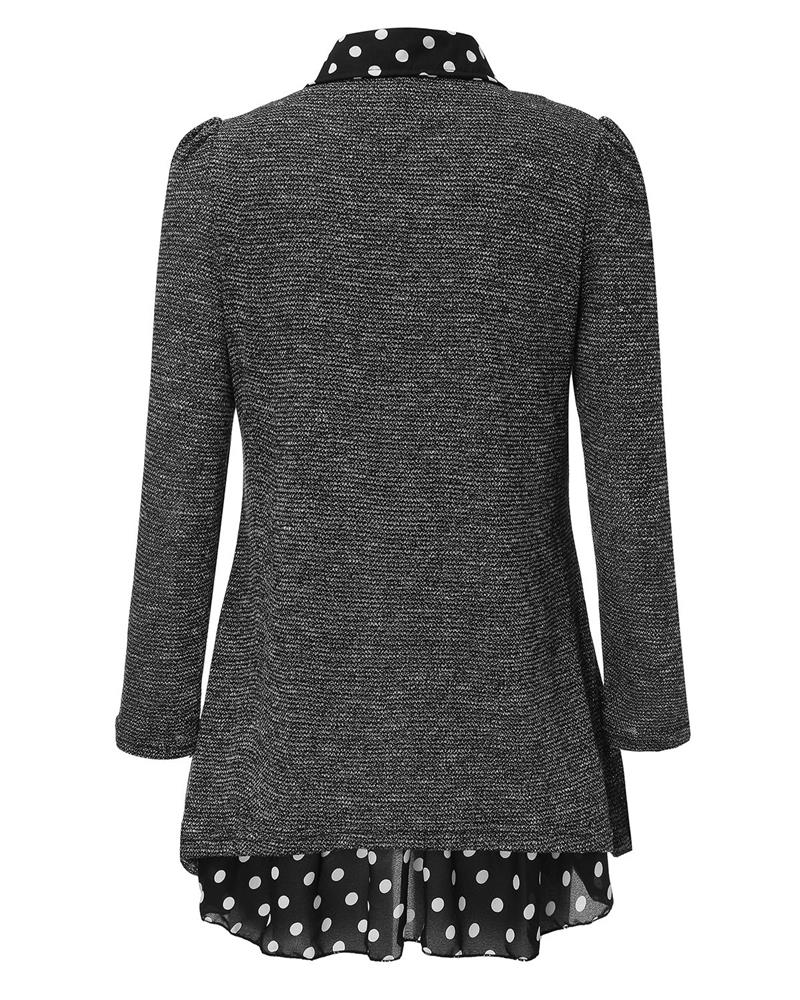 Turn-down Collar,Splicing,Fake Two-piece,Loose,Dots,Long Sleeve