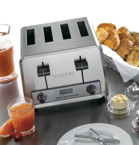 Waring Commercial WCT805 Heavy Duty Stainless Steel Standard Toaster with 4 Slots, 12-Amp