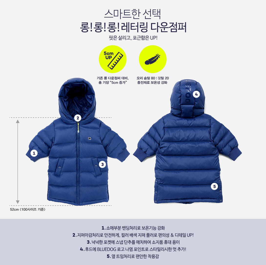 소 재.......겉감 : 나일론 100%, 안감 : 폴리에스터 100%, 충전재1 : 오리깃털 20%, 오리솜털 80%, 충전재2 : 폴리에스터 100%