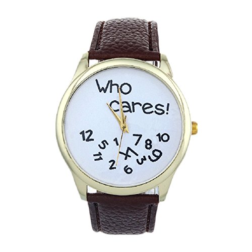 -. Title : Tonsee Neutral Who Cares Letter Leather Casual Watch Analog Quartz Wrist Watch Brown