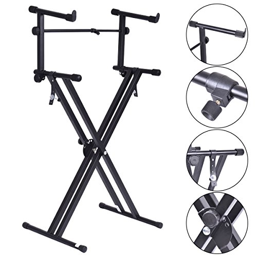-. Title : Pro Adjustable 2-Tier X Style Dual Keyboard Stand Electronic Piano Double