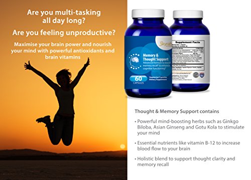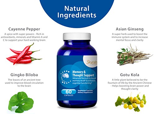 - Feature : ✔ All-NATURAL, SAFE BRAIN SUPPLEMENT to enhance cognitive functioning, BETTER MEMORY RECALL, INCREASED FOCUS and MENTAL CLARITY / ✔ HIGH-QUALITY TESTED, FAST-ACTING, HERBAL INGREDIENTS - A carefully balanced combination made of Asian Ginseng, Gingko Biloba, Cayenne Pepper, Gotu Kola, VITAMIN E and B-12 protects your brain cells and supports cognitive functioning / ✔ Contains Asian Ginseng and Cayenne Pepper which NATURALLY ENHANCE CONCENTRATION and sharpen mental focus ✔ Does not contain St John's Wort which is sometimes used to treat depression. St John's Wort can negatively interact with some drugs and since Memory & Thought Support already consists of a potent herbal blend, we decided not to include this herb in our advanced formula / ✔ Essential nutrients like vitamin B-12 NATURALLY INCREASE BLOOD FLOW to your brain / ✔ 100% VEGETARIAN: Memory & Thought Support fits perfectly into a vegetarian or vegan lifestyle and is of course MADE IN THE USA ✔ TRY our Memory & Thought Support Supplement today - If for any reason you are not 100% satisfied, get in touch and we will give you a full 100% hassle-free refund, no questions asked