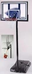 Lifetime Courtside Base, Portable Basketball system, featuring a 48" Shatter Guard¿ Fusion Backboard, making broken backboards a thing of the past, made of Makrolon polycarbonate, making it virtually unbreakable and many times stronger than acrylic. Black hammertone steel, 3 Piece, 3" Round Quick Adjust II Pole system, allows you to lower the rim height from 8 to 10 feeet using a broomstick. Players of any age or skill can enjoy the game at their level. 1.25" Straight Round Extension arms provide increased playing area beneath the basket. A Black Slam-It Rim features double compression springs providing spring-back action. Built for competitive play with welded-steel net hooks and an all-weather nylon net. Portable base fills easily with water or sand providing a stable foundation and rolls easily on its own wheels to your desired location. Play today, no cement required !