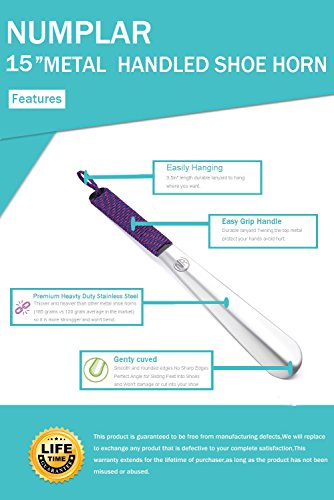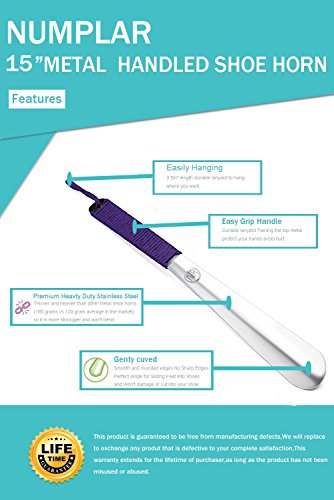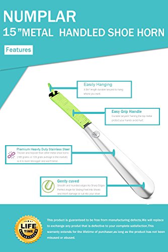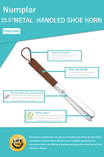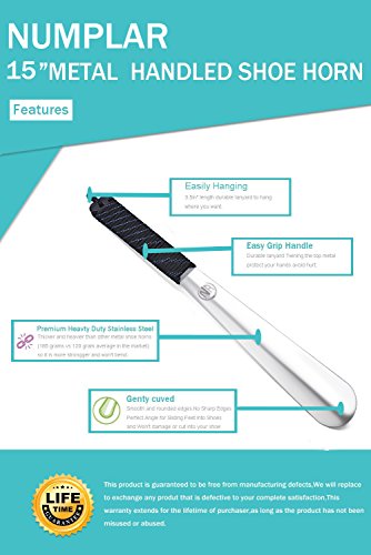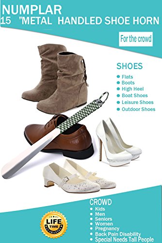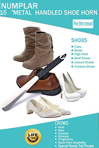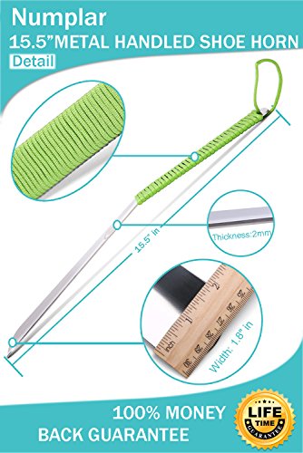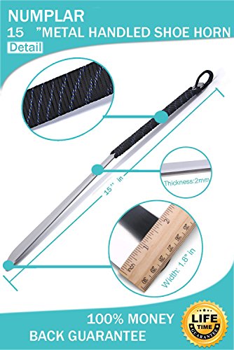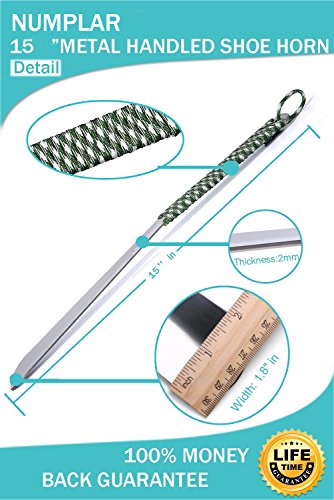 | Long Metal Shoe horn-15" Extra Long Handled Shoehorn with Paracord Strap for Boots shoes-Stai... |