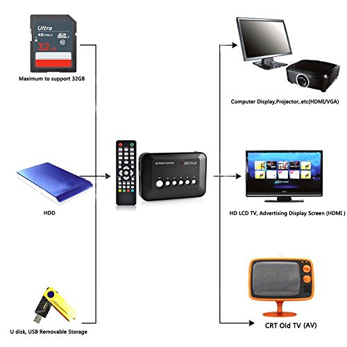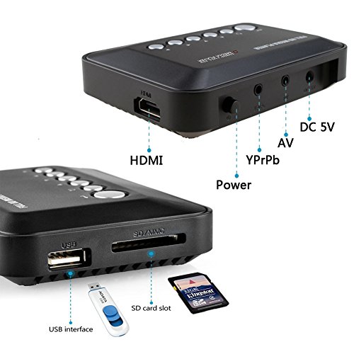 UVIA 1080P Full HD Multi TV Media Player HDMI Video Player with YPbPr USB 2.0 SD and HDMI Ports MP3 AVI RMVB MPEG Advertising Player with Remote Control