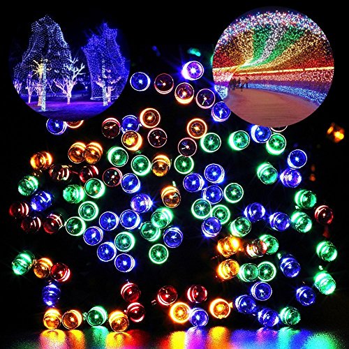 Blusow Solar String Lights 100LED Outdoor Fairy Lights, 55ft8 Feature Courtyard, Garden, Fence, Stairs, Windows, Christmas, Holiday Decorations, Multi Color