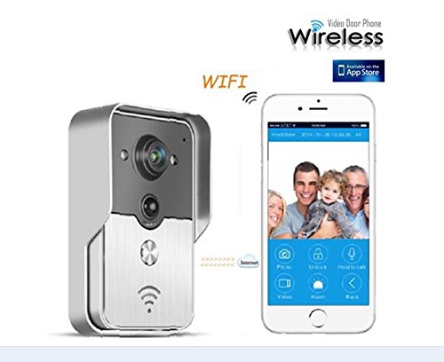 -. Feature : WIFI enabled video doorbell operates through a WIFI signal and can easily be connected to your local network and then synced to your smart phone or Tablet PC running Android or iOS ,it allows you to see who's at your door from your mobile device / Intercom, unlock door. Motion detector. Aluminum display. It can work via both WIFI and RJ45 port.8 doorbells and / Visitor presses button and you get a video intercom at your phone.You can see , hear and speak to your visitor with free app--IPBell for selecting iOS or android mobile devices as well as take a photo or recording of the guest. Android users can download the APP in Google play, iOS users can search "IPBell" in App store to install the APP / IFI doorbell has capabilities of tamper alarm, PIR detection, night view. 8 Doorbells and 8 Mobile devices can work at the same time. / It is easy and quick to install. The user manual is pretty clear and complete both in installation/setting up/operation