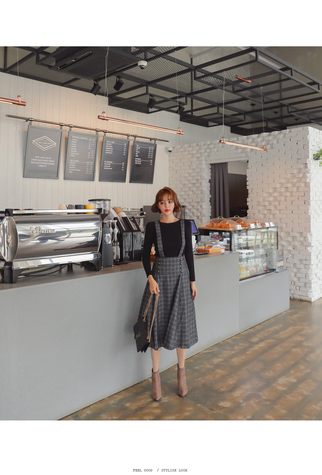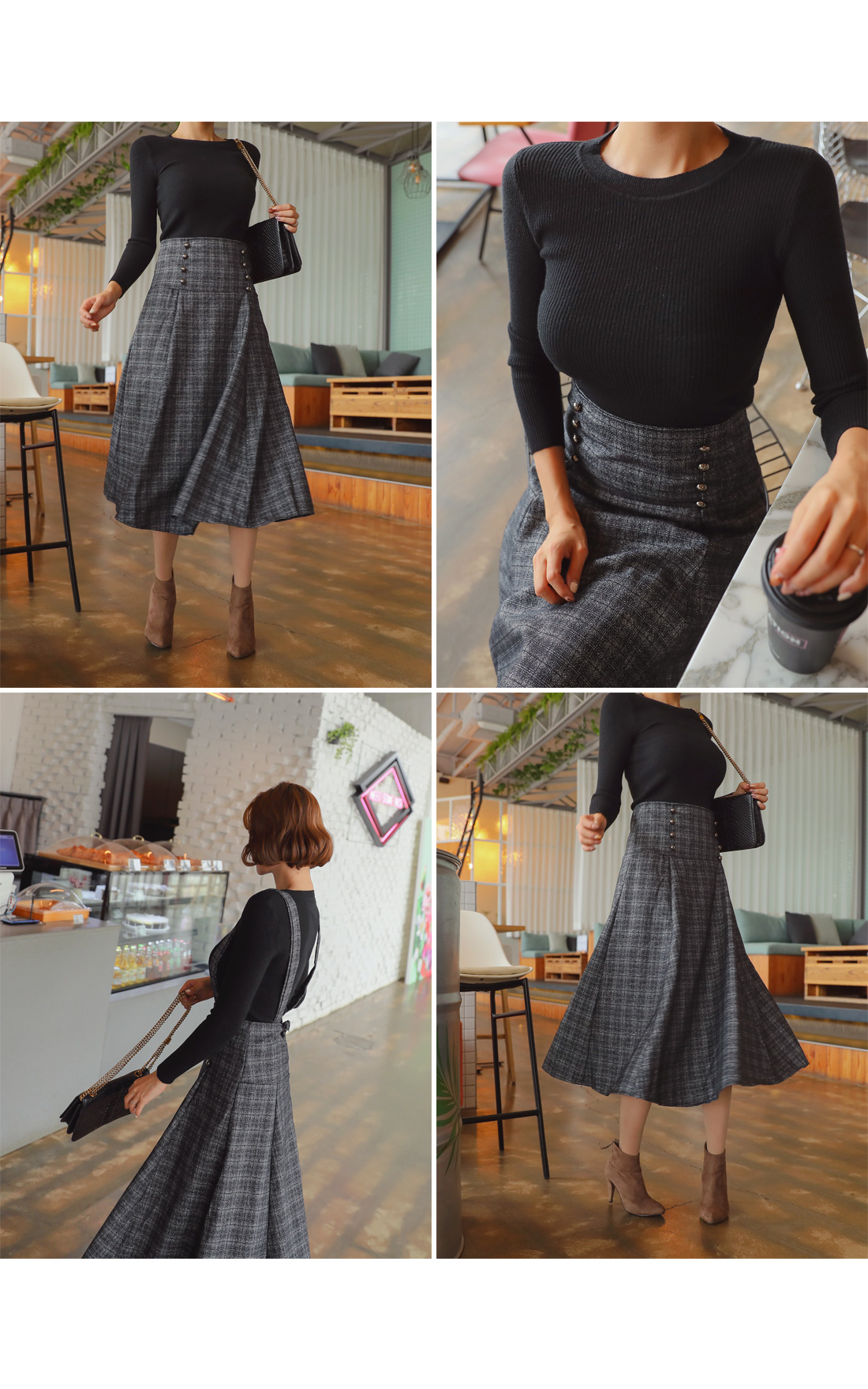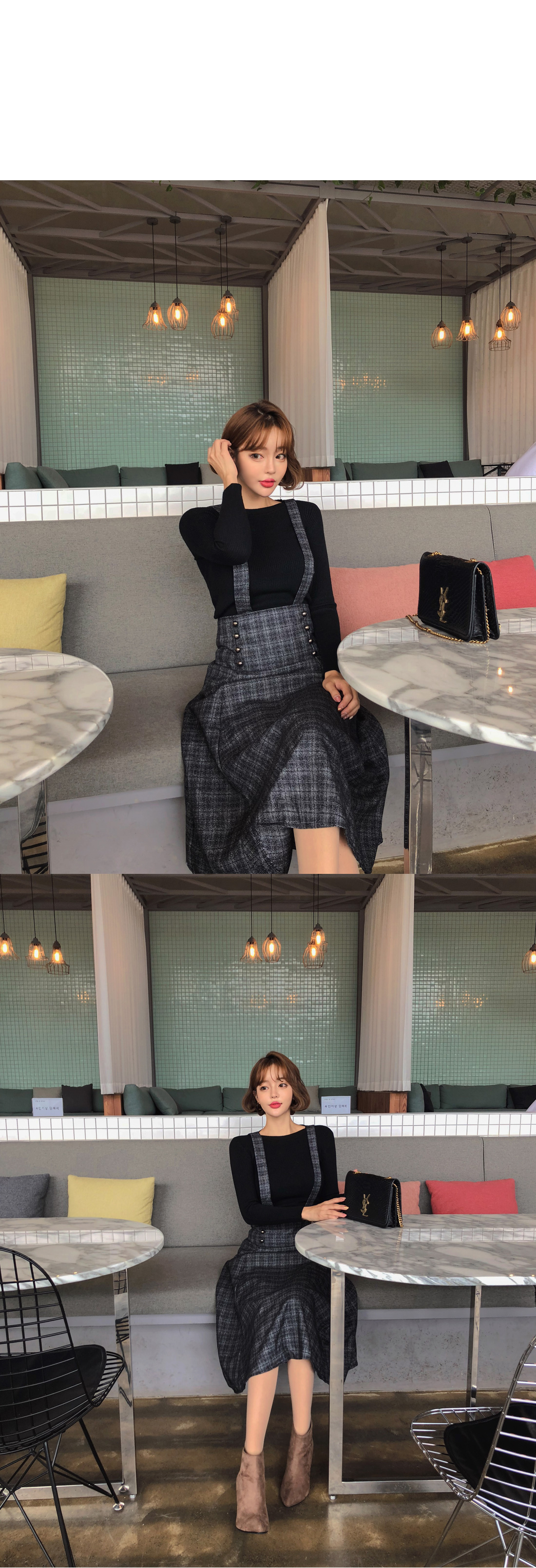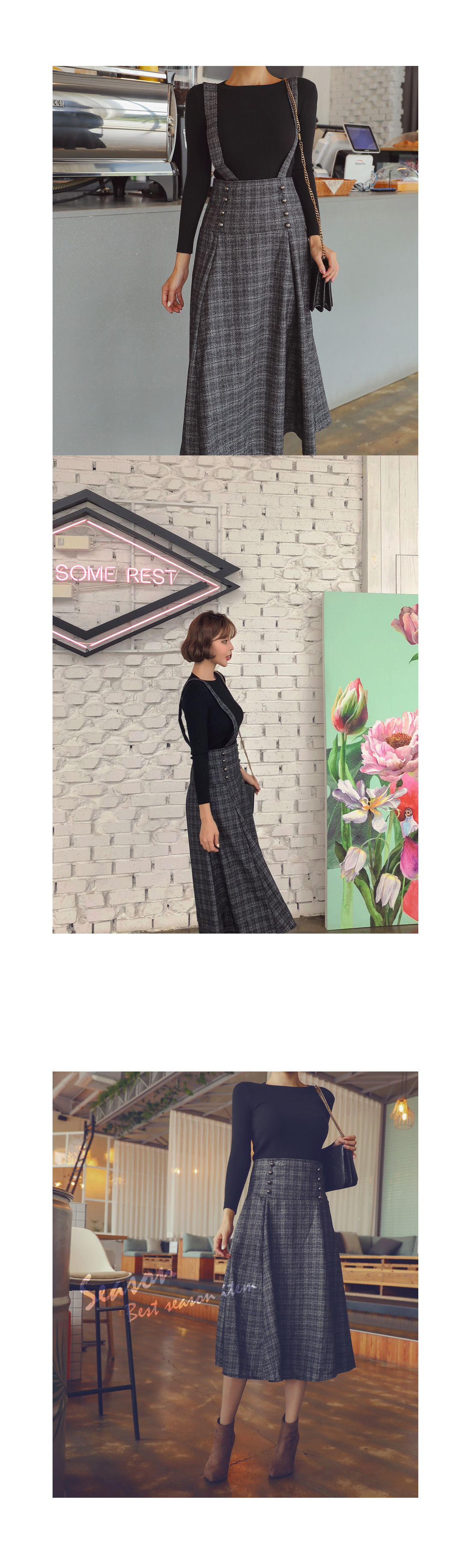스커트는 멜빵 탈부착으로 2가지 느낌으로