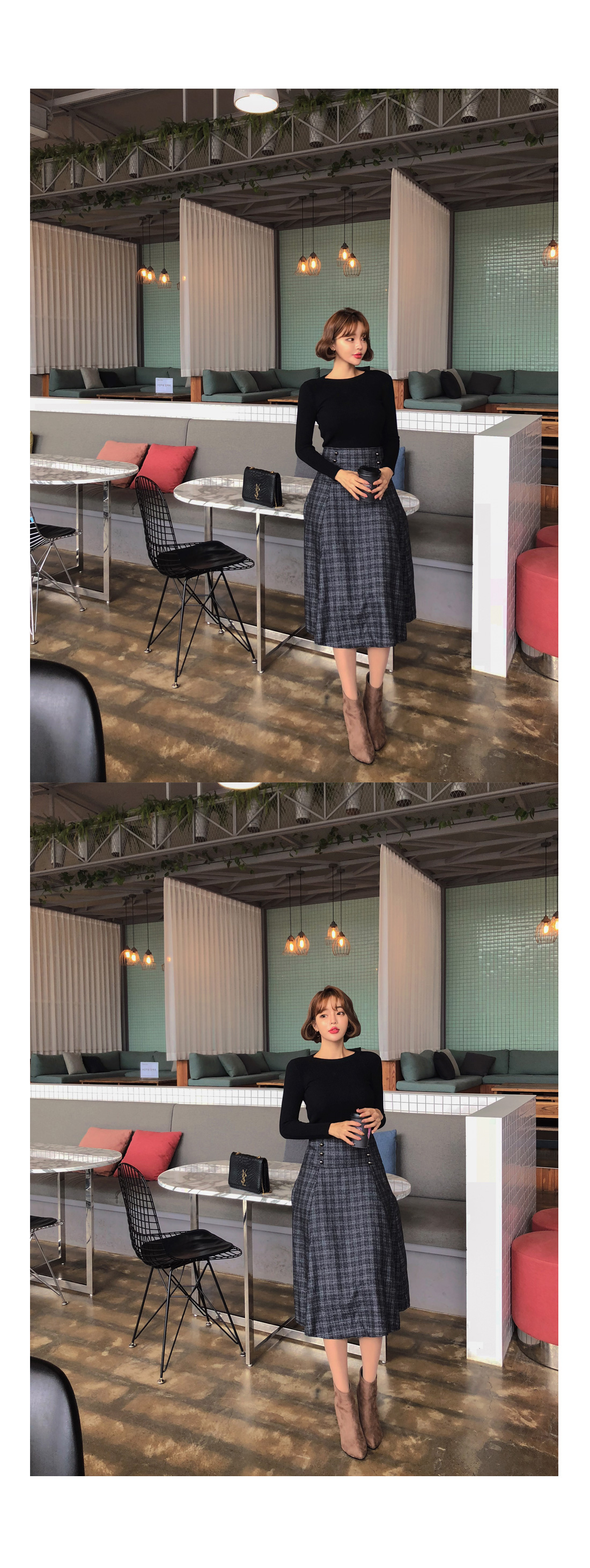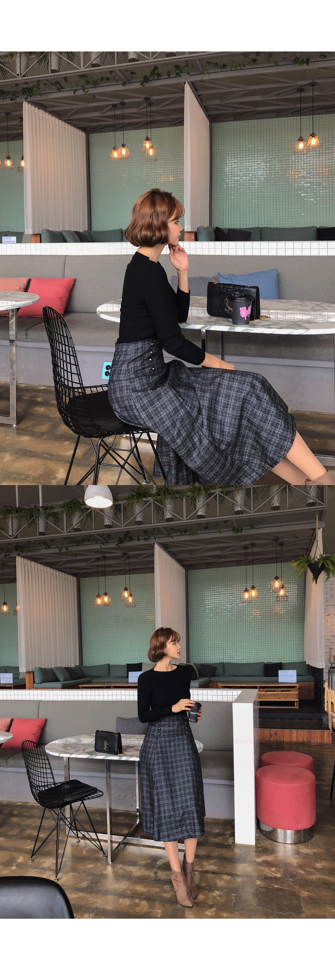 잔잔한 체크패턴으로 분위기있게 코디가능하며