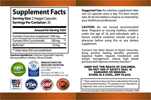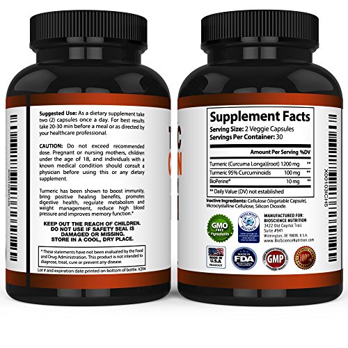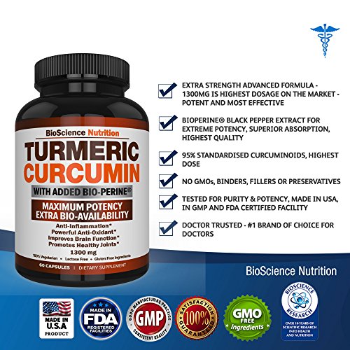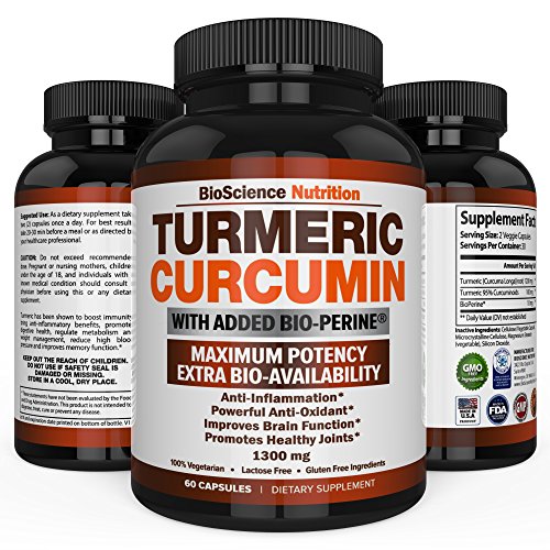 TURMERIC CURCUMIN WITH BIOPERINE 1300MG WITH BLACK PEPPER - JOINT PAIN RELIEF NUTRITIONAL SUPPLEMENTS - 100% HERBAL TUMERIC ROOT CAPSULES - ANTIOXIDANT MEDICATIONS - BIOSCIENCE NUTRITION