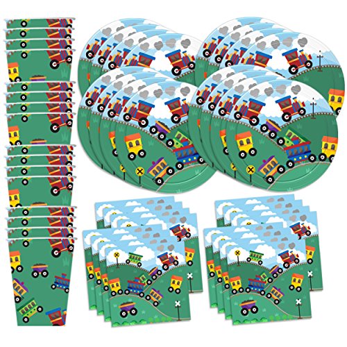 -. Title : Train Birthday Party Supplies Set Plates Napkins Cups Tableware Kit for 16