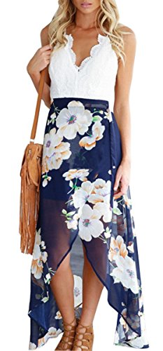 Feature : Material: lace chiffon, lining, high quality fabric keeps you comfortable. / Sexy v-neck, sleeveless, backless, irregular hem, bohemian floral print, halter neck dresses / Occasion: suitable for casual, beach and party / 2 Colors available: pink and blue;4 sizes available for the following listing (S,M,L,XL), please kindly check the size in product description area. / In order to receive the item in good quality, please confirm the item be purchased and shipped from FANCYINN before order. Thank you.