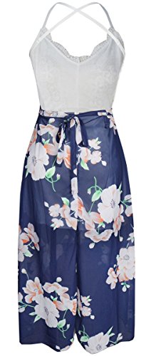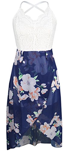 Title : FANCYINN Women V-neck Lace Patchwork Irregular Hem Casual Chiffon Dress Blue S