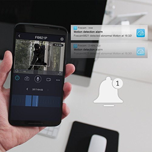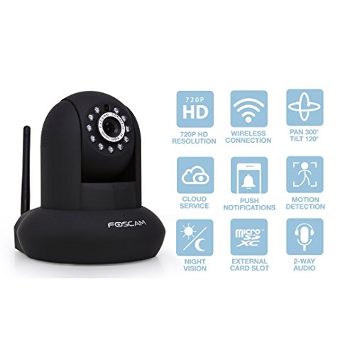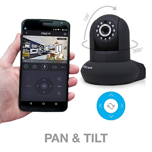 Foscam HD 720P WiFi Security IP Camera (Enhanced 2017 Edition) with iOS/Android App, Pan, Tilt, Zoom, Two-Way Audio, Night Vision (FI9821PR, Black)